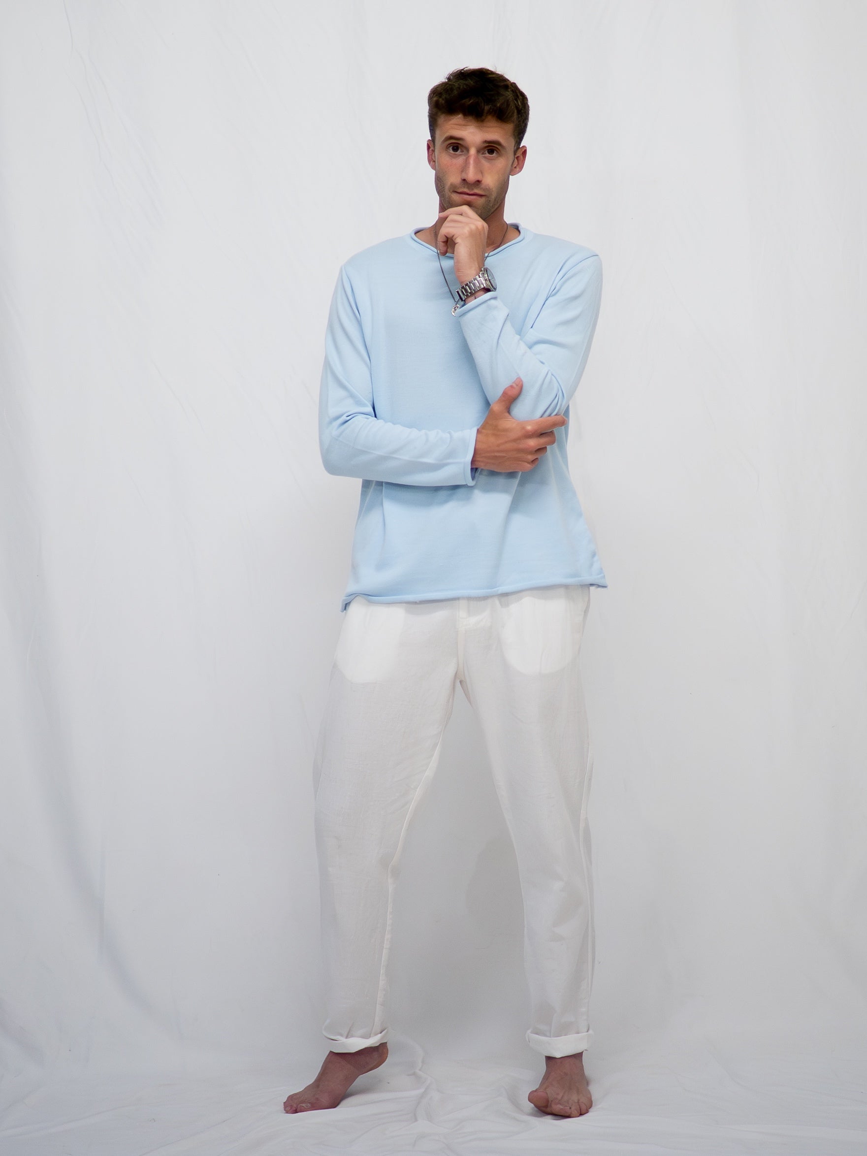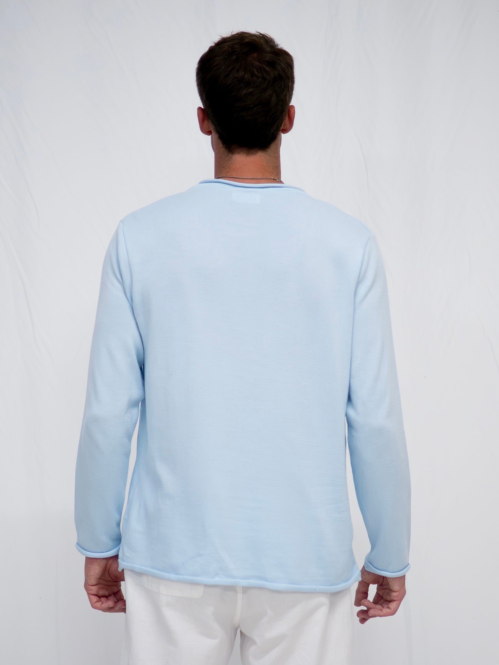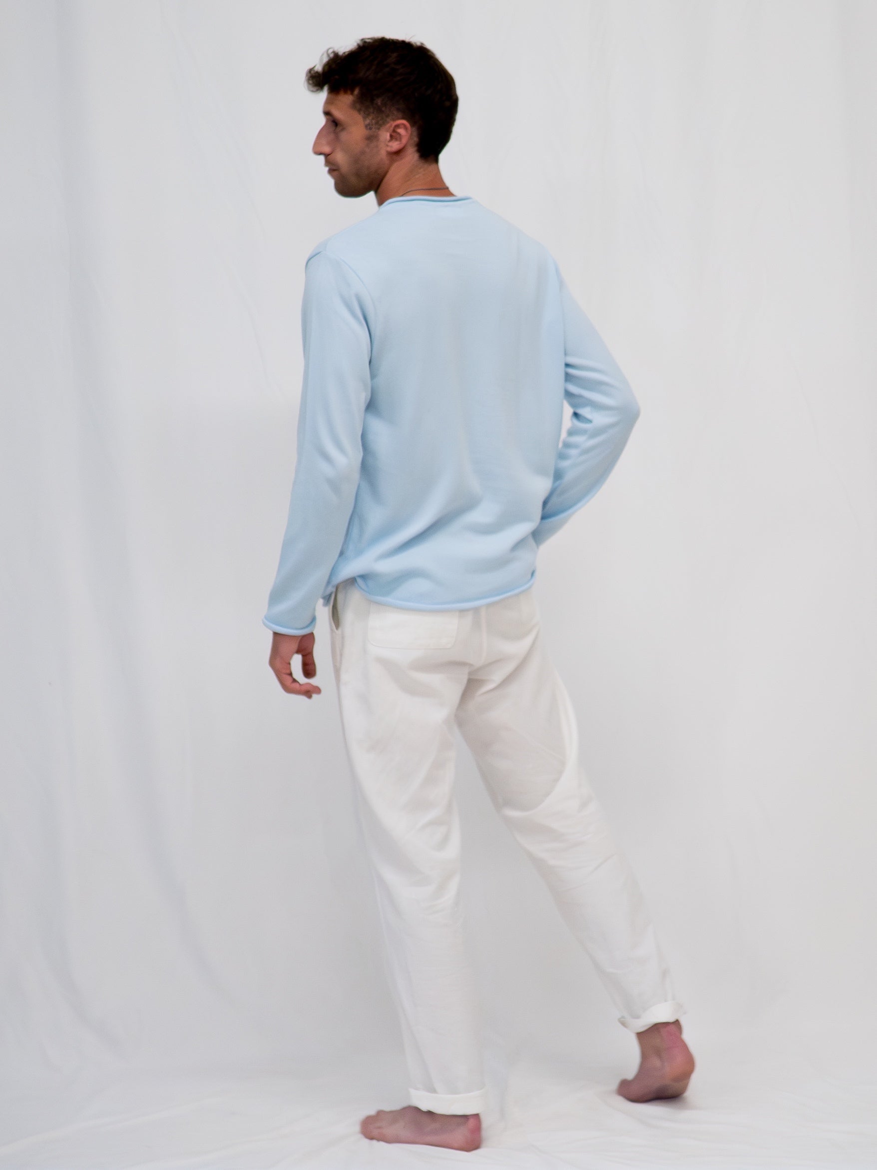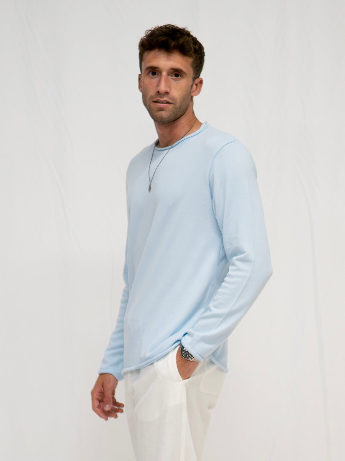 Mediterranean Breeze Collection; Sky Blue; 100% Cotton; Crew neck; Available in sizes S-3XL; Designed and made in Spain; Wash at a maximum of 30°C and iron at a medium temperature (maximum 150°C).