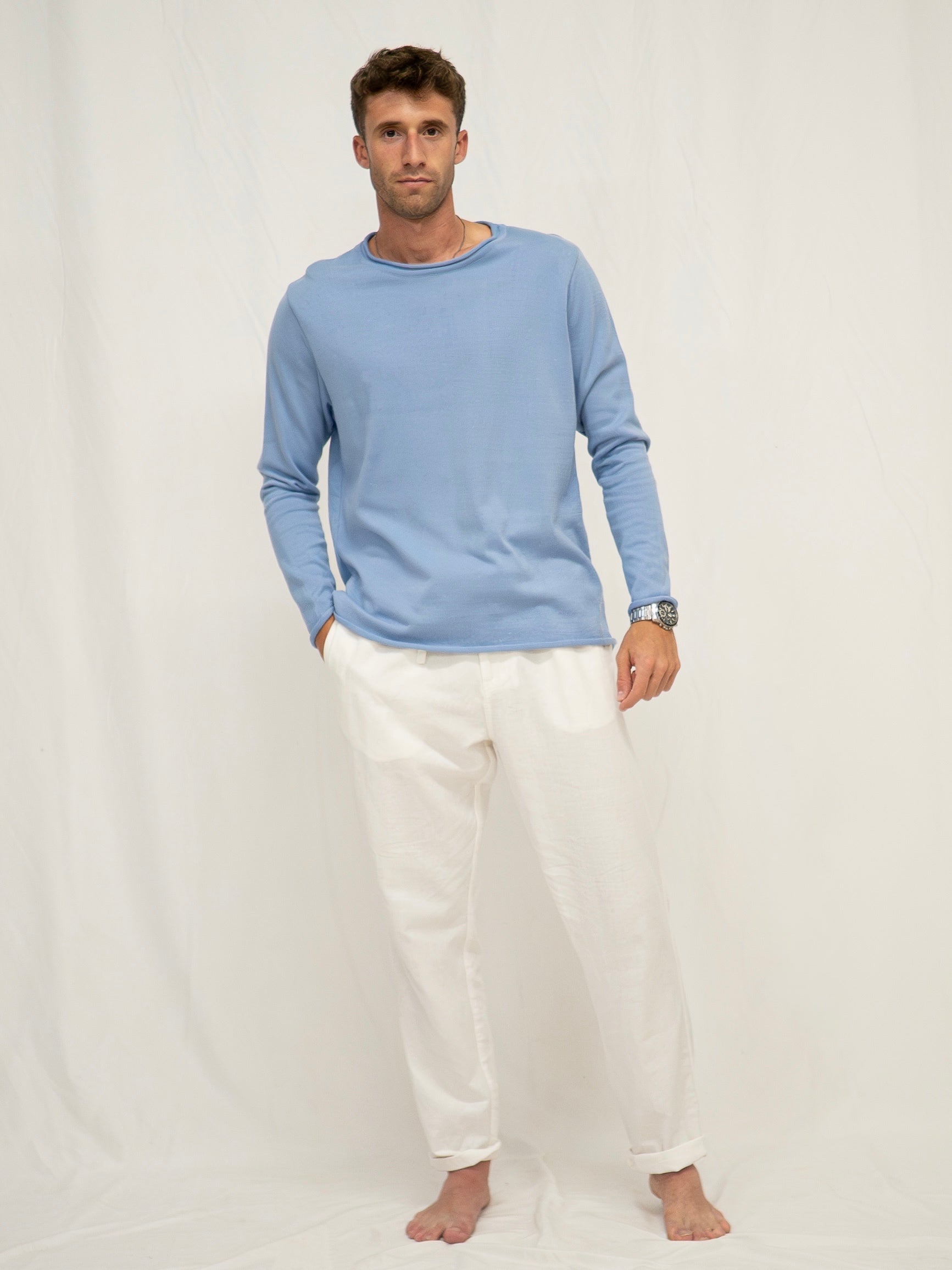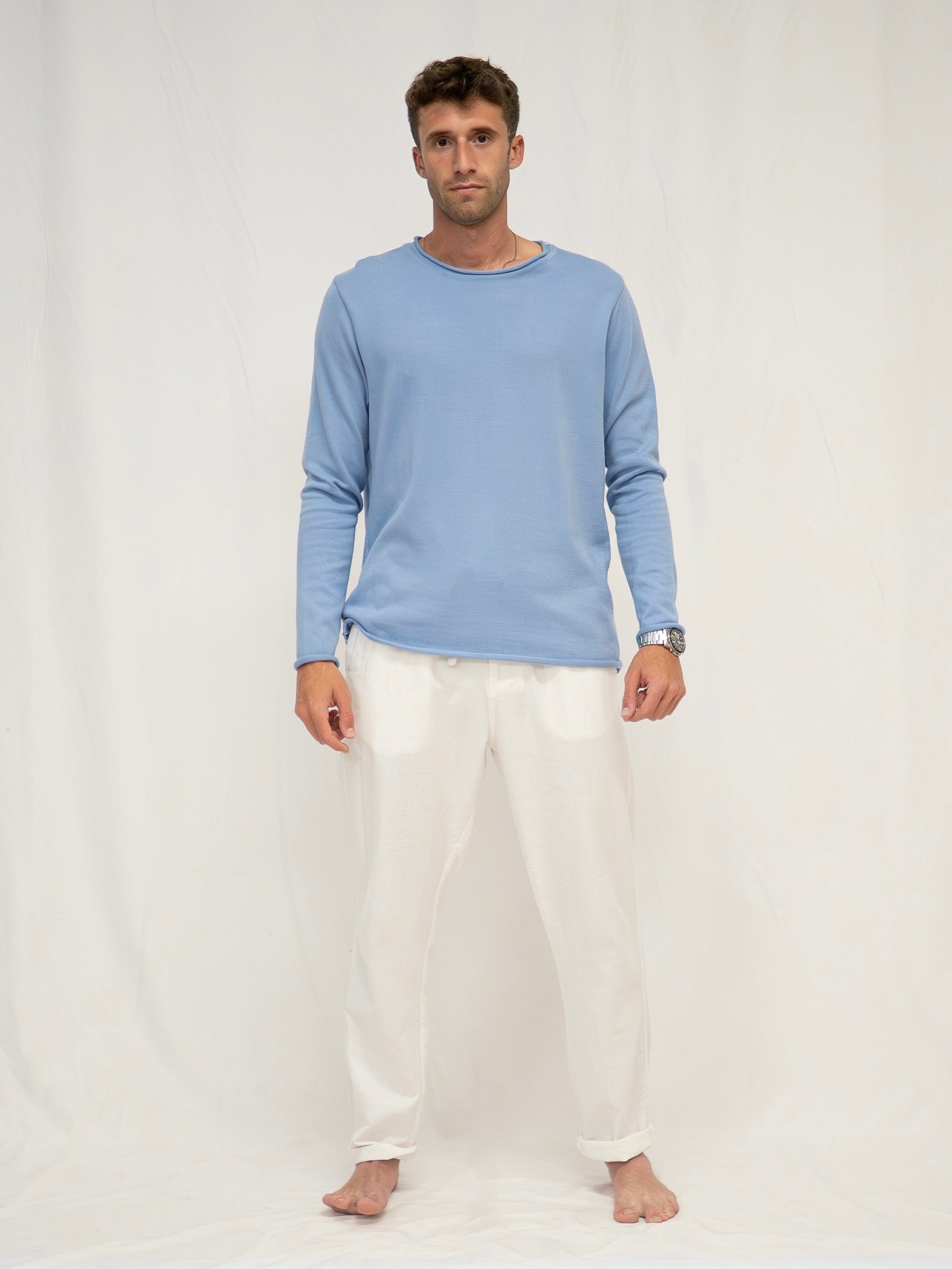 Mediterranean Breeze Collection; Blue; 100% Cotton; Crew neck; Available in sizes S-3XL; Designed and made in Spain; Wash at a maximum of 30°C and iron at a medium temperature (maximum 150°C).