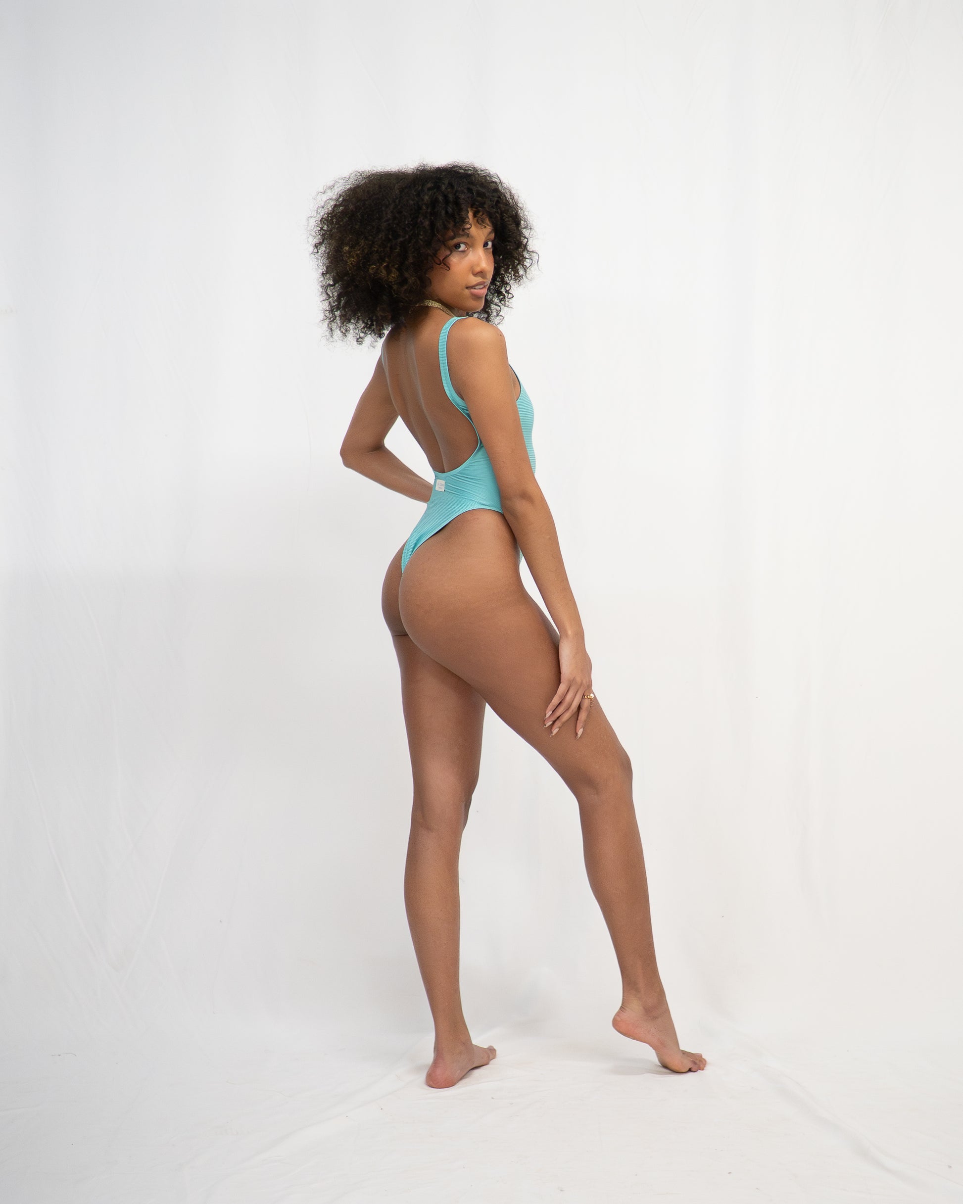 Naia, espíritu del agua en la mitología, da nombre a este bañador de líneas limpias y textura marcada. Su tejido acanelado horizontal en tono vibrante verde turquesa aporta personalidad y frescura. Con un escote favorecedor y una espalda elegante, Naia está pensado para quienes disfrutan del mar con energía y estilo. Una pieza cómoda y visualmente impactante para brillar bajo el sol.